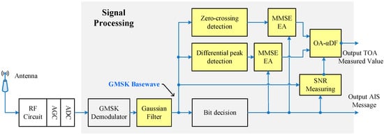Based on the above results, we present a pseudorange measurement scheme based on the existing AIS communication system, and the specific block diagram is shown in Figure 14: