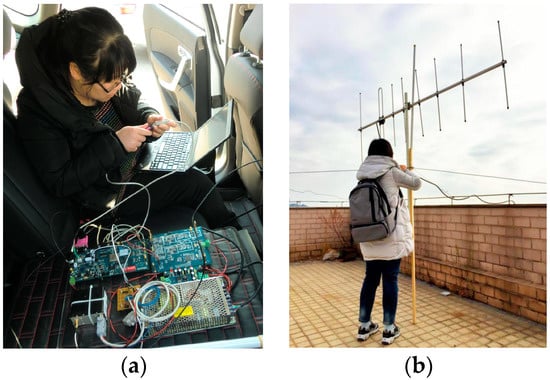 In order to remove the error caused by the clock source interference at both ends of the transmitter and receiver, we used a rubidium atomic clock which had been synchronized by GNSS as the clock source. Additionally, we simultaneously used a Yagi–Uda antenna (Figure 15b) as the transmitting and receiving antenna to reduce the influence of multipath interference on the measurement results [,].