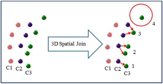 3D spatial join between points from C2 and C3.