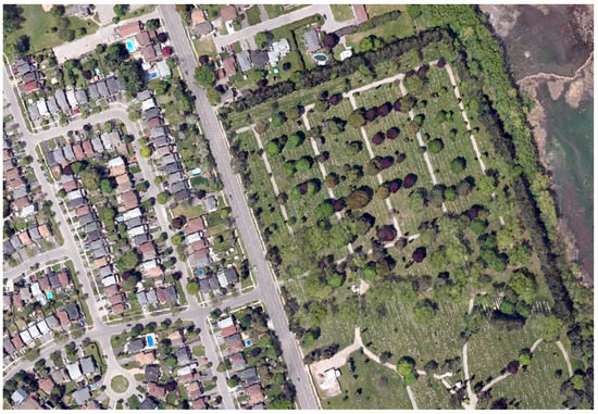 The study area is located in Oshawa, Ontario, Canada. The Optech Titan multispectral LiDAR sensor was used to acquire LiDAR point for a single strip during a flight mission on 3 September 2014. Optech Titan acquired LiDAR points in three channels at 1075 m altitude, ±20° scan angle, 200 kHz/channel Pulse Repetition Frequency and 40-Hz scan frequency. The mean point density for each channel is 3.6/m2, with a point spacing of about 0.5 m. The acquired data consist of trajectory position data, as well as a time-tagged 3D point cloud with multiple returns (up to a maximum of 4 returns) in LASer file format (LAS) for each channel. The LAS data file contains xyz coordinates, raw intensity values, the scan angle and the GPS time of each LiDAR point.