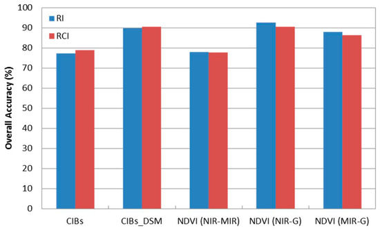 Overall accuracy from the two classification techniques.
