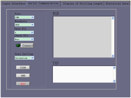 The serial-communication interface of the visual drilling-length management software is shown in Figure 10.