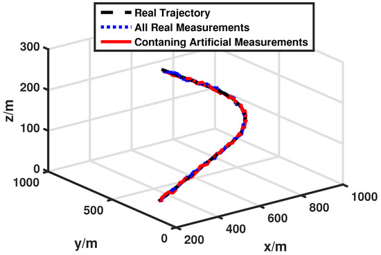 where is the artificial measurement and is the zero-mean measurement noise. This model can be regarded as a measurement model of the real measurement and we want to use the artificial measurement to approximate the real measurement. The Equation (15) can be rewritten as