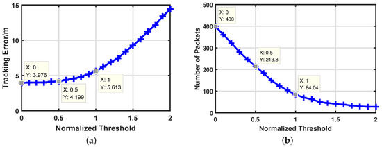 Impacts of normalized threshold . (a) Target tracking error with different . (b) Energy consumptions with different .