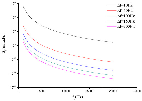 It can be seen that the mechanical sensitivity is increased with the reduction of and is decreased with the rising of the drive mode frequency. However, because the working bandwidth of the gyroscope is estimated as , the value of cannot be too small for the requirement of the working bandwidth. Therefore, in order to get a higher mechanical sensitivity, should be as low as possible.