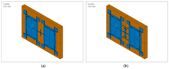 A thermal analysis simulation is performed for the two structures using the ANSYS software. Figure 15 shows the simulation models of the two types. In the figure, the blue part is a 60 m-deep silicon layer, and the orange part is a 500 m-deep glass layer. The mesh element is SOLID 90, which has 20 nodes with a single degree of freedom, temperature, at each node. The 20-node element has compatible temperature shapes, is well suited to model curved boundaries and is applicable to a 3D, steady-state or transient thermal analysis [30]. The change in stiffness due to thermal stress affects the natural frequency of the gyroscope.