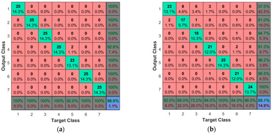 Most of the classification errors for the inertial sensors happened between Shapes 1 and 2 due to their similarity, as shown in Figure 8b and in the confusion table in Figure 9b. This is not the case when the sensor considered is the barometer, as shown in Figure 9a where the misclassification mainly affects Shape 5.