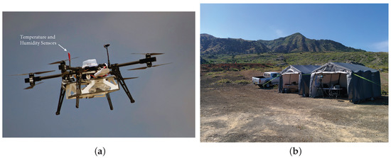 Flight operations on Ascension Island (a) University of Bristol X-8 Multirotor; (b) Field site.
