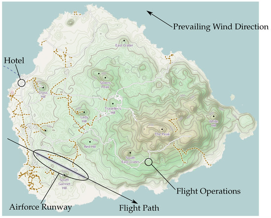In September 2013, a three-person team from Birmingham and Bristol visited Ascension Island for a reconnaissance trip to identify possible operational sites. This proved to be invaluable for the subsequent field campaign, and the authors highly recommend this approach for any significant UAS operations. Three possible sites were initially identified, of which one was selected as the most suitable to operate from. The area found was located by the road leading out to the old NASA site and provides excellent access, isolation and the ability to block the road and control access for third parties. It is approximately 350 m ASL, which reduces the height required to climb compared to a sea level launch and is on the windward side of the island, providing clean, unobstructed airflow from the prevailing wind direction: south, southwest.