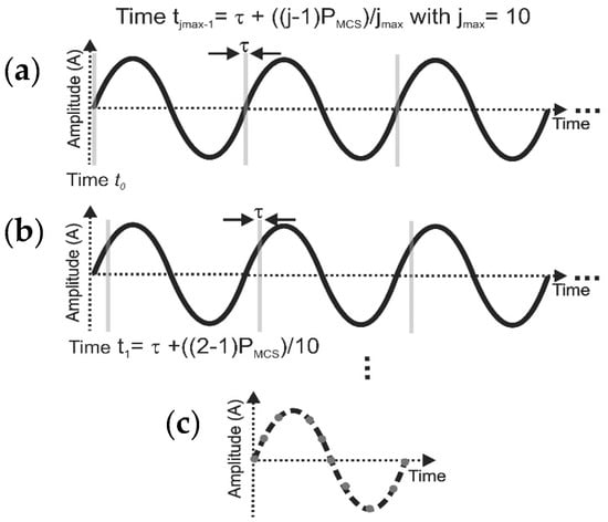tj−1, is integrated over a specific number of pulses (or, consequently, over a specific number of periods). The latter is indicated by the vertical grey lines (