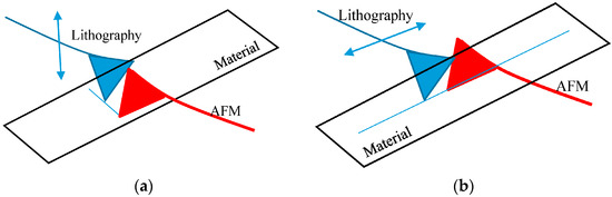 - Fang, T.-H.; Weng, C.-I.; Chang, J.-G. Machining characterization of the nano-lithography process using atomic force microscopy. Nanotechnology 2000, 11, 181–187. [Google Scholar] [CrossRef]
