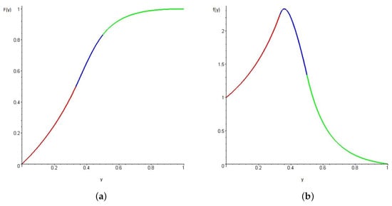 Similarly, when analyzing the limits of integration for the integrals over and , so that the non-null parts are integrated and the result is continuous over the range of integration, the following intervals are obtained for y: , and .