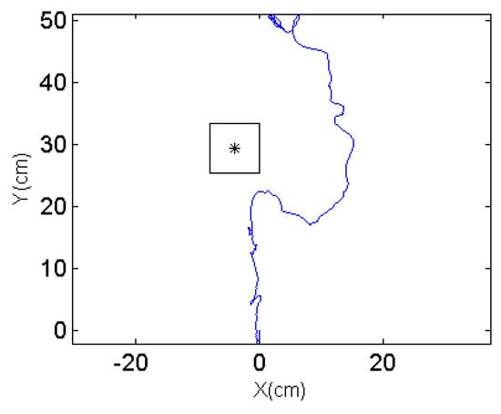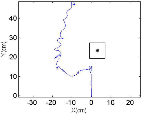 It can be seen in Figure 19c–e that the robot turns to the left side when detecting an obstacle at its right front. The oscillations along the path in Figure 20 are due to the pitch and roll motion of the robot. The second scenario when the robot detects an obstacle at its left front is also captured using VICON system and the trajectories are shown in Figure 21 and Figure 22.