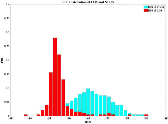 - Mean and standard deviation ( are derived from RSS data. The average strength levels of these two types of data can be categorized for some situations. Figure 2a illustrates the mean values of LOS and NLOS conditions; the clarity of the data is striking. The maximum LOS value is greater than the maximum NLOS value.