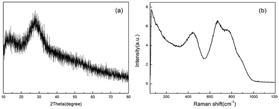 (a) The XRD pattern of TZNb glass; (b) Raman spectrum of undoped TZNb glass.