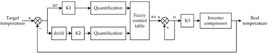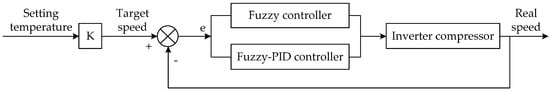 The schematic diagram of thermal control. If the temperature deviation is large, the single fuzzy controller will be adopted to improve the response speed and reduce the negative overshoot; Otherwise, a fuzzy-PID controller will be carried out to improve the accuracy.