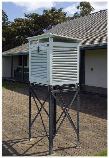 Appearance of Stevenson screens (photographed by Nachoman-au, distributed under a CC BY-SA3.0 license).