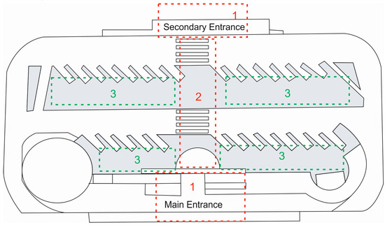 As shown in Figure 6, three zones are defined in a real scenario (schematic view of a local bus station), depending on the user’s location relative to their ultimate goal: