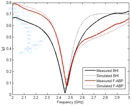 Measured and simulated reflection coefficient for BHI and F-ABP.