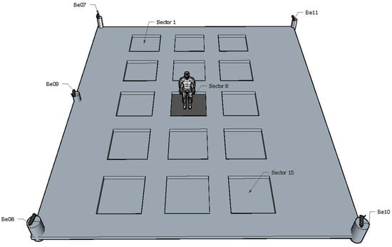 Receiver devices are very sensitive when used in indoor localization []. We start by assessing the capabilities of the two mobile devices: a smartphone running the Android 5.1 operating system, and a Raspberry Pi 2 equipped with a USB BLE4.0 antenna [], from now on referred to as the smartphone and the BLE4.0 antenna, respectively. Furthermore, we will refer to each one of the 151 m sectors by a number from 1 to 15, where the sectors are numbered from left to right starting from the upper left corner.