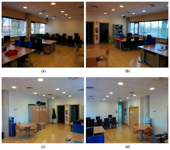 Pictures from each one of the four corners of the lab. (a) from Be07; (b) from Be08; (c) from Be10; (d) from Be11.
