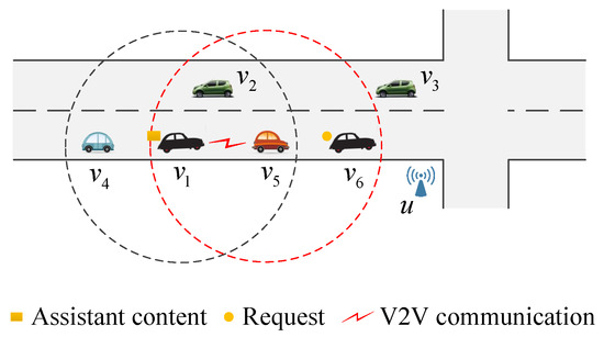 Considering that a vehicular node could receive content from others via V2V communications, we regard vehicular nodes as the supplementary storage devices so as to increase the access ratio [31]. The supplementary storage starts in V2U communications when some vehicles request to and receive extra contents from roadside units. We call these vehicles the assistant vehicles and the extra contents as the assistant contents. After that, when the assistant vehicles encounter the vehicular nodes requesting the assistant contents, they reply to the requests through V2V communications.