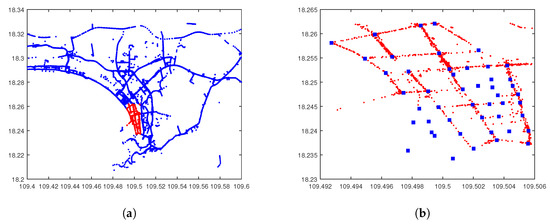 In order to further evaluate our proposal in real vehicular scenarios, we carry out experiments based on real taxi trajectories of 4600 taxis in Sanya City, Hainan Province, China, from 9 a.m. to 10 a.m. on 15 November 2016. The open access dataset is provided by Ministry of Transport of China [37]. The GPS data collection cycle is 10 s, but some vehicles have only one location entry in a minute.
