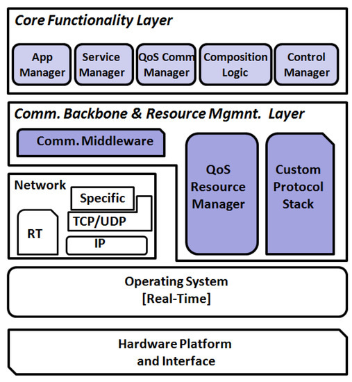 38]. In these, there is a clear layered view based on basic operating system services, infrastructure middleware, distribution middleware and application-specific middleware. To comply with the high-level abstract architecture definition of ICE, the integration is provided following the architectural presentation of ICE, i.e., showing the functional blocks, as illustrated in