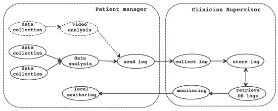data analysis service () that performs initial processing of the collected samples creating basic data logs with the measured data from the monitored patient;