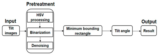 In this paper, a new tilt correction algorithm based on MBR is proposed. The MBR is a simple algorithm for representing the size and shape of an object in the direction of the principal axis. At present, there are some common methods for extracting MBR, such as the rotating target method and the vertex chain code method [47,48]. In general, the result of the rotating target method depends on the size of each rotation angle. As the rotation angle decreases, the number of rotations increases, resulting in a longer computation time. Therefore, it is not easy to obtain an accurate MBR. The vertex chain code method has a faster computation time than the rotating target method, but the amount of calculations is still very large.
