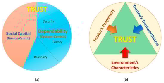 (a) Trust concept in the relation with dependability and social capital; (b) Three main aspects of trust in the SIoT environment.