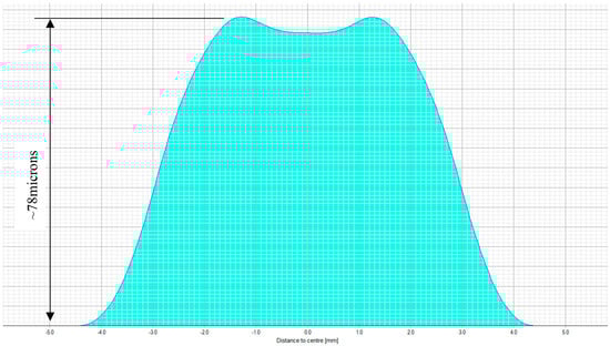 The treatment planning software of a 217P laser system calculates a multifocal ablation pattern by combining the normal distance vision treatment plan for the ametropic condition of the subject, with a near vision addition in the 3-mm central zone of the treatment (see Figure 2 and Figure 3). On one hand, the normal distance vision treatment thereby uses an adaptation of the original Munnerlyn formula [] to flatten the overall cornea in the peripheral and paracentral zone. This flattening is customized to the individual eye, to reduce the cornea’s refractive power and to bring the focus point of the eyes optical system right onto the retina. The near-vision addition, on the other hand, creates a small central region of higher curvature and hence a higher refractive power. The higher power is customized such that close-by targets are well focused on the retina. The hypothesis of multifocal ablations is that the brain is capable of blending the retinal images, and hence enables the subject to have good near, intermediate, and distance visual acuity. In order to prevent undesired optical side effects from the transition between the small area of high curvature and the flatter corneal region, a proprietary customization algorithm ensures that postoperative spherical aberrations are avoided.