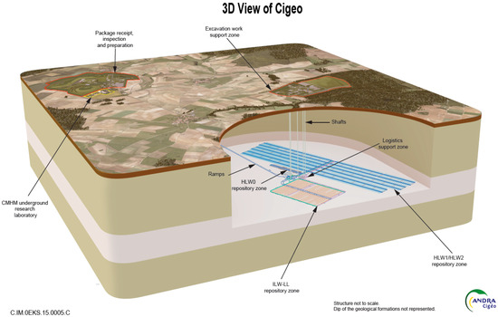 Cigéo is designed to isolate the radioactive waste from humans and the biosphere and to confine it within a deep geological formation to prevent dissemination of the radionuclides contained in this waste. In the French design, the disposal takes placed in a clay formation, an argillaceous rock (clay rock) known as the Callovo-Oxfordian formation, which is approximately 155 million years old and lies at a depth of 400 to 600 m.