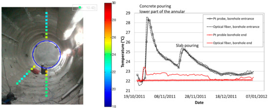 - Farhoud, R.; Bertrand, J.; Buschaert, S.; Delepine-Lesoille, S.; Hermand, G. Full scale in situ monitoring section test in the Andra’s Underground Research Laboratory. In Proceedings of the 1st Conference on Technological Innovations in Nuclear Civil Engineering (TINCE), Paris, France, 29–31 October 2013. [Google Scholar]