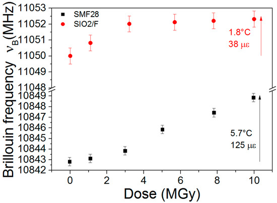 - Cangialosi, C.; Girard, S.; Boukenter, A.; Marin, E.; Cannas, M.; Delepine-Lesoille, S.; Marcandella, C.; Paillet, P.; Ouerdane, Y. Steady Sate y-radiation effects on Brillouin fiber sensors. In Proceedings of the 24th International Conference on Optical Fiber Sensor, Curitiba, Brazil, 28 September–2 October 2015. [Google Scholar]
