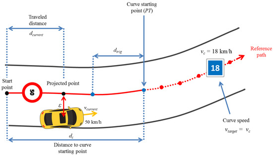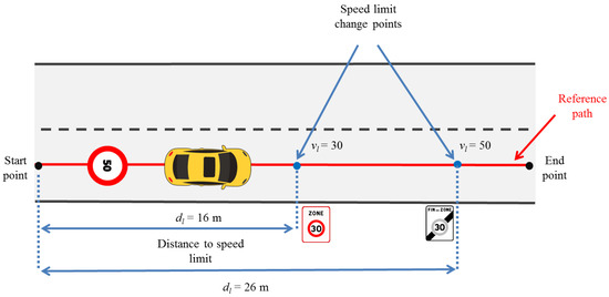 - Compute the distance () from the speed limit change point to the reference starting point in the path.