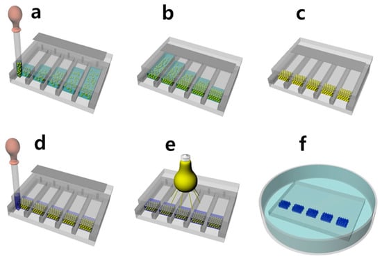 - Lee, S.; Lee, Y.-L.; Kim, B.; Kwon, K.; Park, J.; Han, K.; Lee, H.; Lee, W. Rapid on-chip integration of opal films and photonic gel sensor array via directed enhanced water evaporation for colloidal assembly. Sens. Actuators B 2016, 231, 256–264. [Google Scholar] [CrossRef]
