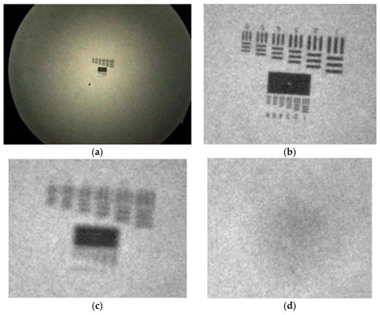 Image preprocessing. (a) Initial image; (b) Sharp image (correctly focused); (c) Blurry image (slightly out of focus); (d) Blurry image (severely out of focus).