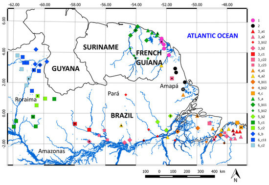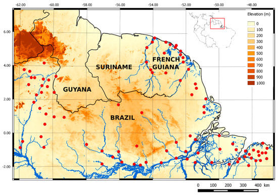 - Hammond, D.S. Tropical Forests of the Guiana Shield: Ancient Forests in a Modern World; CABI: Oxfordshire, UK, 2005. [Google Scholar]