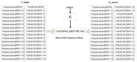 where, we define Rr as a set, which includes the overall sequence randomly aligned 0 to 15. In theory, there are 16 possibilities for this permutation. Each aligned sequence has a strong randomness to randomize the order in which each packet matches the check information. By the following formula, a specific out-of-order sequence’s index is obtained.