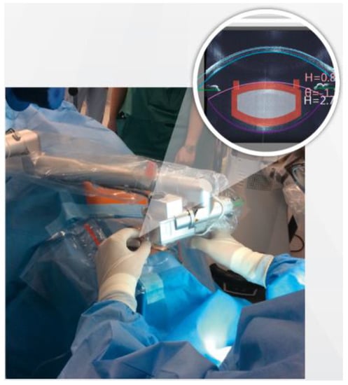 - Palanker, D.V.; Blumenkranz, M.S.; Andersen, D.; Wiltberger, M.; Marcellino, G.; Gooding, P.; Angeley, D.; Schuele, G.; Woodley, B.; Simoneau, M.; et al. Femtosecond laser-assisted cataract surgery with integrated optical coherence tomography. Sci. Trans. Med. 2010, 2, 58ra85. [Google Scholar] [CrossRef] [PubMed]