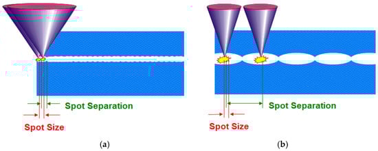 (a) The cutting process is limited to the focal spot size. Many pulses are needed to cut the tissue, so a high frequency repetition rate is needed. (b) The cutting process is mainly performed by mechanical forces of the expanding gas bubbles). Fewer pluses are needed but stress is generated in the tissue.