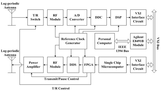 In order to solve the aforementioned problems, the second version of WIOBSS was developed by Nie et al. [57] and Yao et al. [58] in 2005. Its block diagram is shown in Figure 1. This system mainly consisted of a personal computer, a transmitting channel, a digital receiver, two log-periodic antennas, a reference clock generator, and a solid-state power amplifier [59,60].