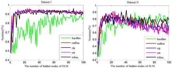 35] succeeded in extending ELM to kernel learning, that is, ELM can use various feature mappings (hidden-layer output functions) involving not only random hidden nodes, but also kernels. In other words, in kernel ELM (KELM), which has been proven more efficient and stable than the original ELM, the hidden layer feature mapping is determined by virtue of a kernel matrix. Furthermore, KELM retains the characteristic of ELM, whose quantity of hidden nodes is randomly assigned. Then, Fernández-Delgado et al. [