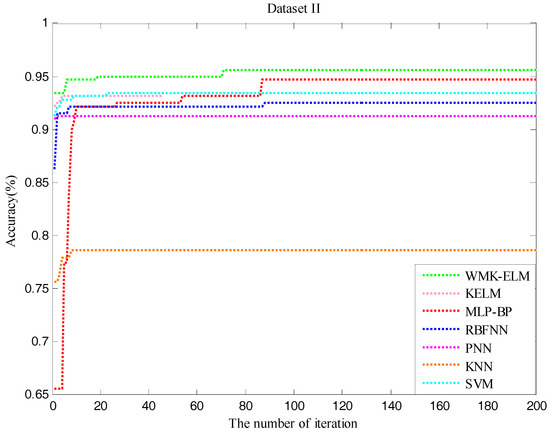 29]. The nonlinear classifier can model the complicated nonlinear relationship between inputs and desired outputs and exhibits distinguished robustness and fault tolerance. Nevertheless, it shows delaying convergence and easily falls into local optima.