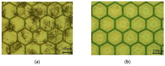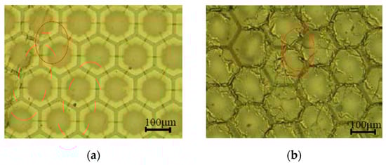 (a) Poorly distributed silver nanowire electrode coated on untreated SU-8 membranes; (b) Well-distributed and transparent silver nanowire electrode coated on treated SU-8 membranes.