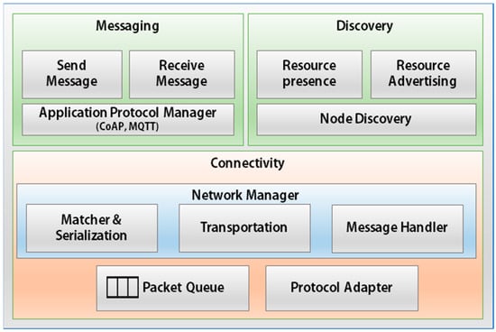 Android Things is an IoT platform developed by Google, and is based on the kernel and upper subsystems of the Android operating system. Android Things is aimed at cross-platform applications for IoT devices with low power and low hardware specifications. It supports cloud systems based on M2M (Machine to machine) communication methods [7]. Californium is an open source IoT platform based on the CoAP, and developed using Java. It is composed of: a Network State module, which supports connections through various network protocols; a Protocol Stage module, which processes request messages; and the Business Logic State, which provides services to users. In addition, because Californium simplifies the Protocol Stage and introduces multi-threading, IoT systems operating on this platform can provide quick responses to multiple requests within a short timeframe [24]. nCoAP is an open source IoT communication platform based on the CoAP, which uses a Netty framework to support non-block asynchronous communication. Within this framework, nCoAP uses a multi-threading model with thread pooling to process requests simultaneously and quickly [25].