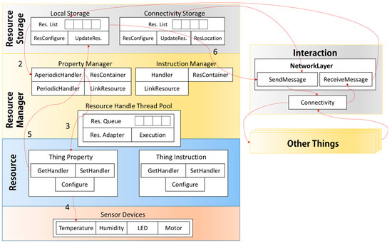 In addition, MinT provides a system process model to improve processing performance and network reliability. IoT networks can be configured with numerous devices, ranging in size from local area to global area networks. In distributed networks, rapid request processing is one of the most important factors in IoT environments. Because processing delays can cause service and network latency across the entire network, IoT devices require efficient and rapid processing within the middleware. To improve processing performance, MinT prioritizes system resource utilization towards the Interaction Layer; this layer manages and processes requests received from other IoT devices. MinT also supports multi-threading in the Interaction Layer, to allow efficient processing of requests according to the hardware platform performance.