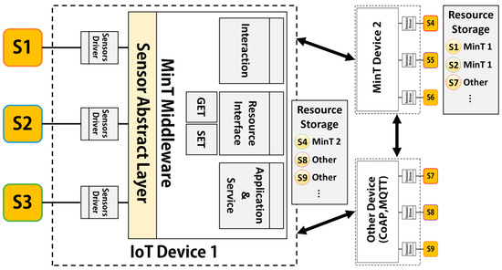 Second, as shown in Figure 1, an IoT device implemented by MinT can interact spontaneously with peripheral IoT devices connected in the same region and network area. For this purpose, MinT provides the following features.