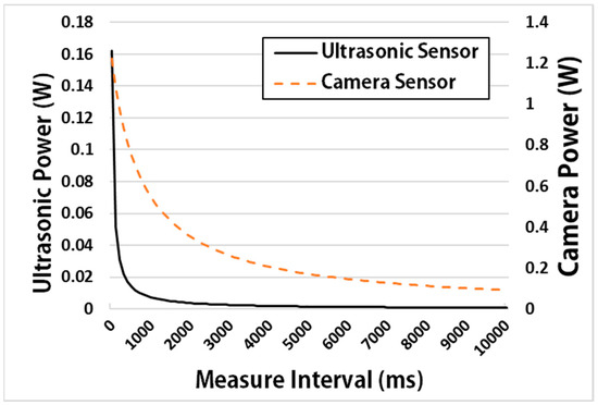 Power (Watt) of an ultrasonic sensor and camera sensor according to measure interval.
